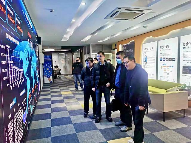 2022年3月25日(周五)上午,浙江中國(guó)小商品城集團(tuán)股份有限公司數(shù)字化發(fā)展部總經(jīng)理陳軍松等一行人到訪我司參觀外貿(mào)快車及Videoforce項(xiàng)目,思億歐董事長(zhǎng)何旭明先生、思億歐高級(jí)副總裁徐蘇源先生、思億歐技術(shù)總監(jiān)方勇先生、思億歐財(cái)務(wù)總監(jiān)王萍女士熱情接待。