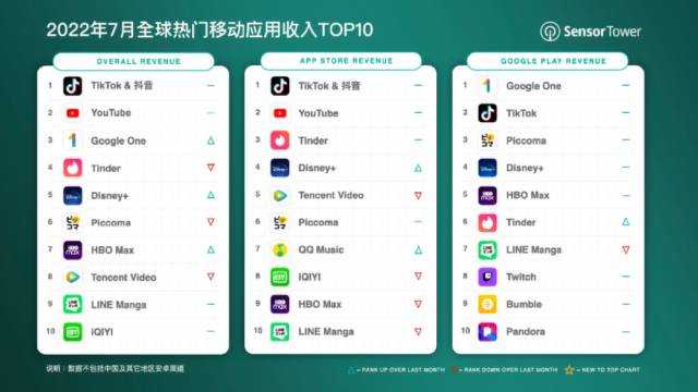 8月10日消息,Sensor Tower 最新數(shù)據(jù)顯示,2022年7月抖音及海外版 TikTok 在全球 App Store 和 Google Play 吸金超過2.9億美元,是去年同期的1.7倍,蟬聯(lián)全球移動(dòng)應(yīng)用 (非游戲) 收入榜冠軍。