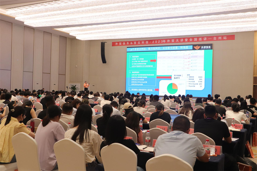 2023年9月7日,在臺(tái)州市開(kāi)投溫德姆酒店舉辦的外貿(mào)大講堂已圓滿落幕。本次活動(dòng)由思億歐主辦、外貿(mào)快車臺(tái)州服務(wù)中心承辦,思億歐高級(jí)副總裁徐蘇源先生、思億歐外貿(mào)快車華東區(qū)域負(fù)責(zé)人陳珊珊女士、外貿(mào)快車臺(tái)州服務(wù)中心總經(jīng)理王瑩瑩女士等出席會(huì)議。會(huì)議吸引了近600家企業(yè)到場(chǎng),現(xiàn)場(chǎng)座無(wú)虛席,參會(huì)人士熱情高漲。