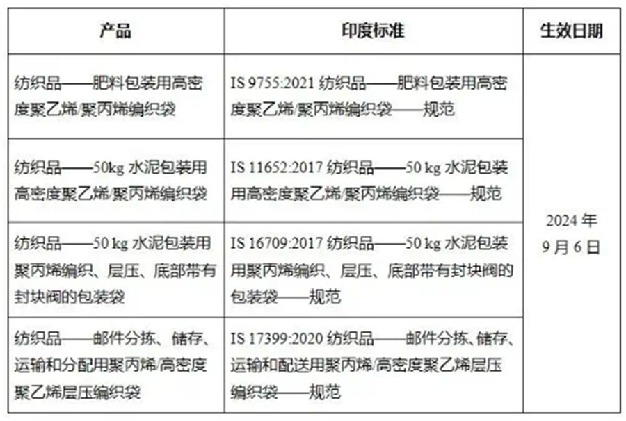 近日,印度化學與石化部在與印度標準局(BIS)協商后發(fā)布公告,決定推遲4類聚合物產品質量控制令的實施日期。相關質量控制令最初于2023年12月6日發(fā)布,原計劃于2024年6月3日生效。下表所示這4類聚合物產品的生效日期和相應標準要求。