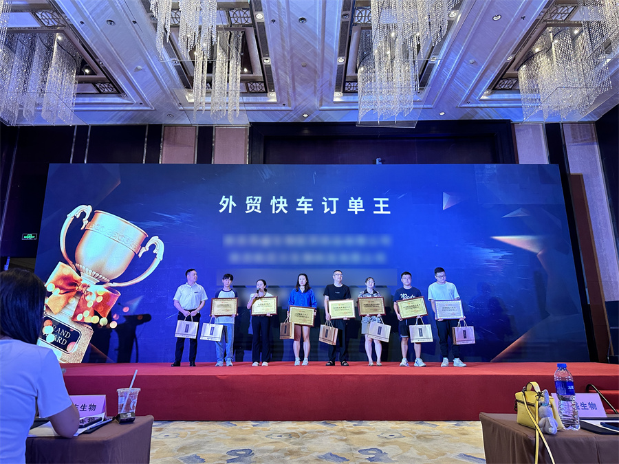 現(xiàn)場(chǎng),嚴(yán)家德先生為獲獎(jiǎng)企業(yè)頒發(fā)了“外貿(mào)快車最佳操盤(pán)手”、“外貿(mào)快車訂單王”、“外貿(mào)快車外貿(mào)新勢(shì)力”、“外貿(mào)快車十年筑夢(mèng)獎(jiǎng)”等獎(jiǎng)項(xiàng),旨在感謝各位合作伙伴對(duì)外貿(mào)快車的信任和支持。