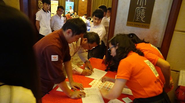 工作人員熱情接待客戶簽到