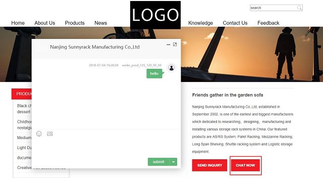 采購商登錄網(wǎng)站,進入網(wǎng)站產(chǎn)品列表(點擊【Product】),點擊【Chat now】,彈出輸入郵箱窗口,點擊【skip】,即可進入實時聊天界面。